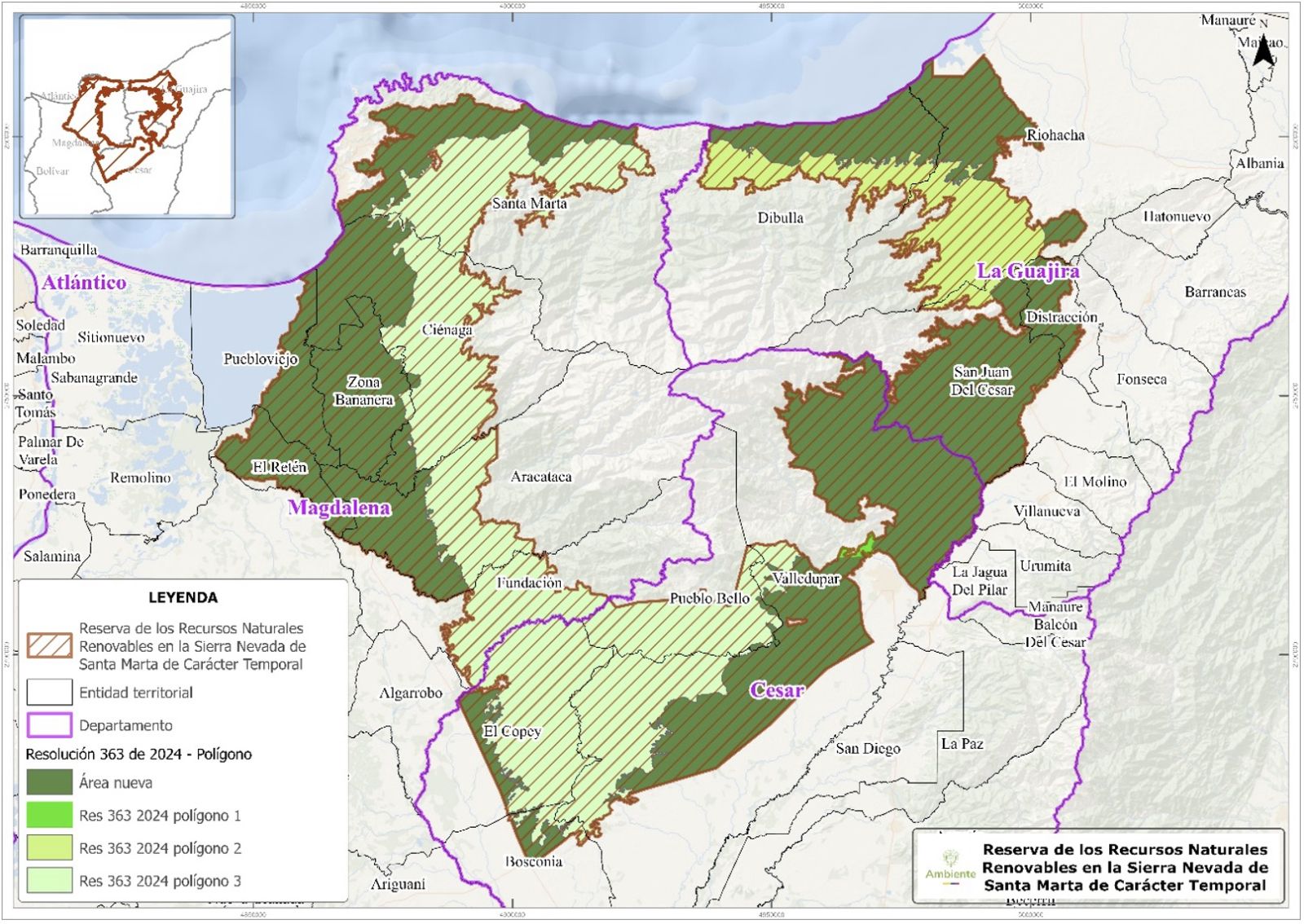 La decisión tiene nombre técnico, pero consecuencias muy concretas: se trata de la declaratoria de una Reserva de Recursos Naturales Renovables de Carácter Temporal sobre la Sierra Nevada de Santa Marta, con una extensión total de 942.005 hectáreas —prácticamente un millón—, calculadas en el sistema de referencia oficial MAGNA-SIRGAS.