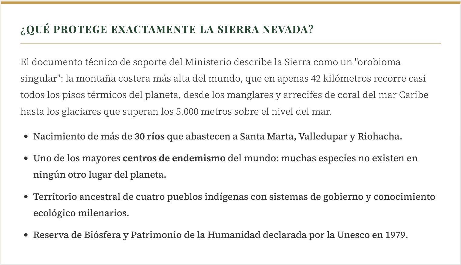 La nueva reserva de la Sierra Nevada es, ante todo, una declaración de intenciones: la de un gobierno que decide que el tiempo de la montaña como territorio ilimitado para la extracción ha terminado. Es también el cumplimiento —parcial y temporal— de una deuda histórica con los cuatro pueblos indígenas que llevan siglos alertando sobre el deterioro del Corazón del Mundo.